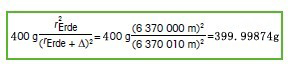 實例說明:如果400g的砝碼在一樓準確顯示為400.00000g,則在四樓(高出10米)的重量為: